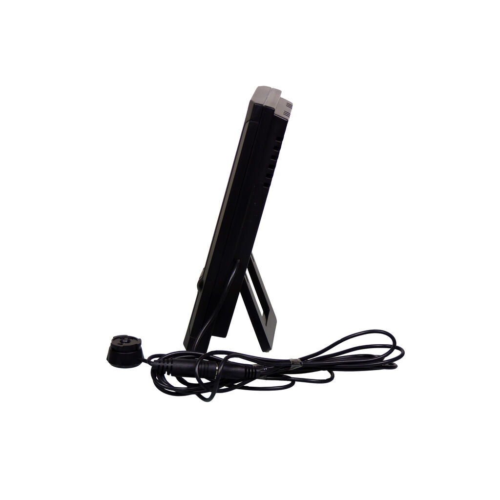 - Display: Large LCD, battery-powered, with stand function and hanging option.