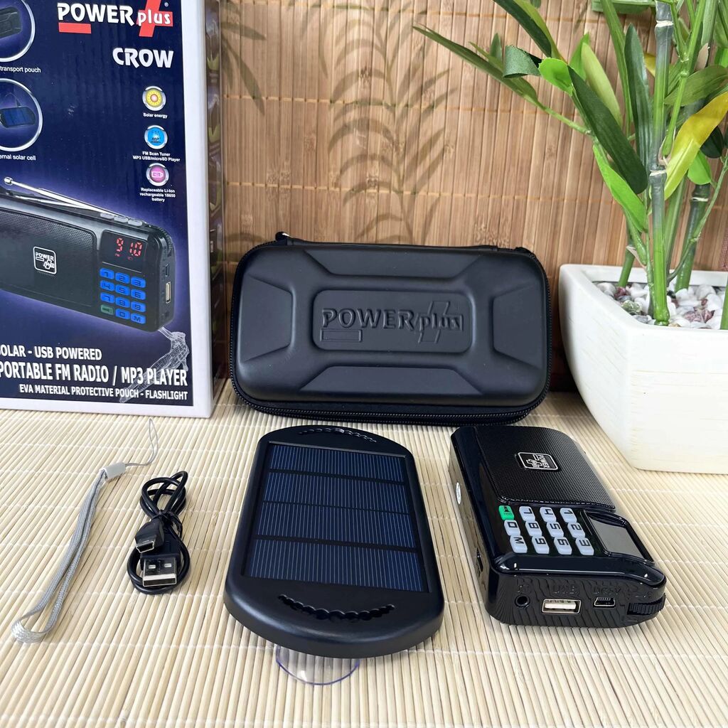 Music, news and light always at hand - powered by the sun or via USB! POWERplus® Crow is a versatile, portable FM radio with MP3 player function, clock and LED flashlight, equipped with a replaceable 18650 battery.