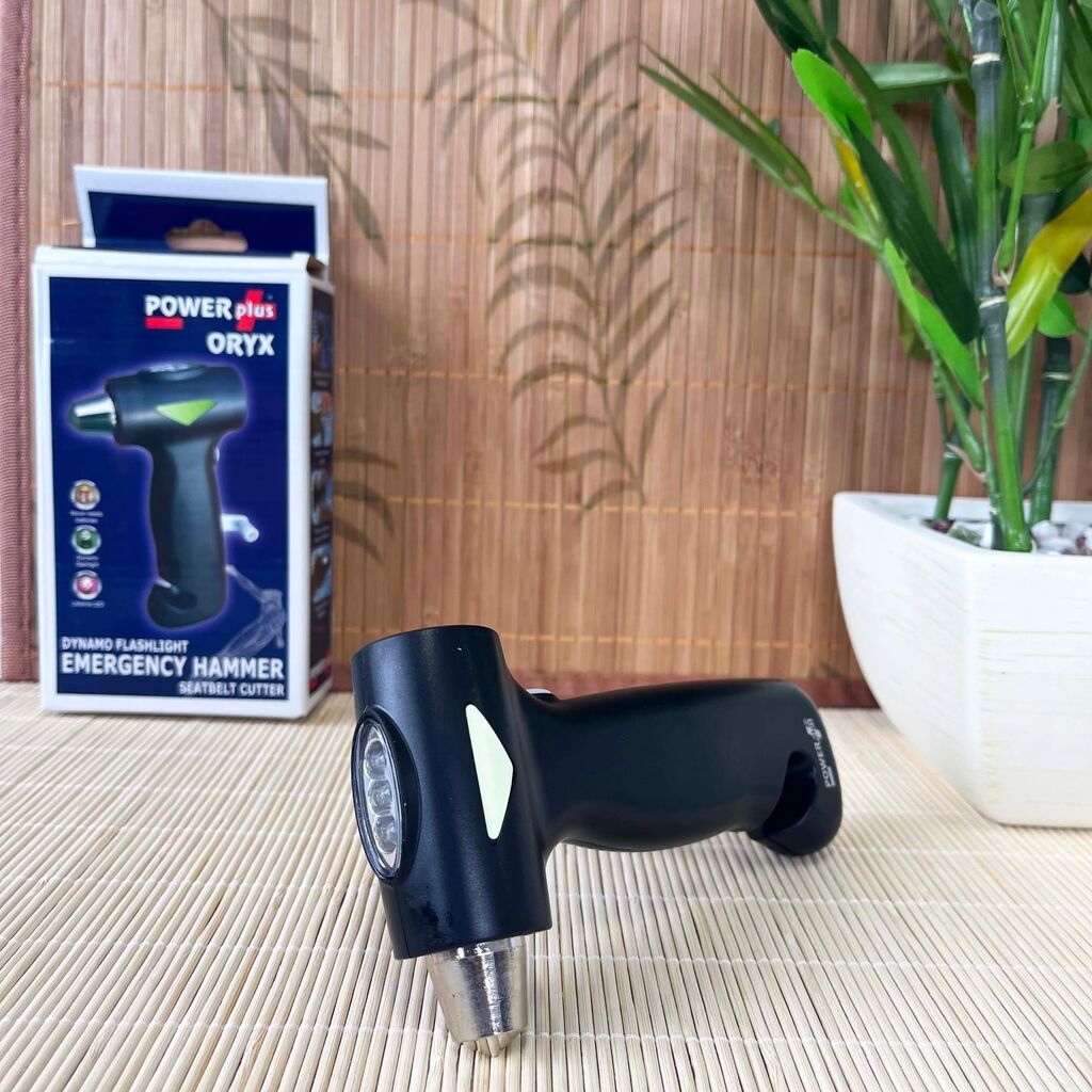 Your safety and peace of mind while traveling are the most important! The 3in1 POWERplus® Oryx emergency hammer is an essential tool in every car that can save the lives of you and your passengers in an emergency. It combines three key functions: a window hammer, a seat belt knife and a reliable dynamo flashlight.