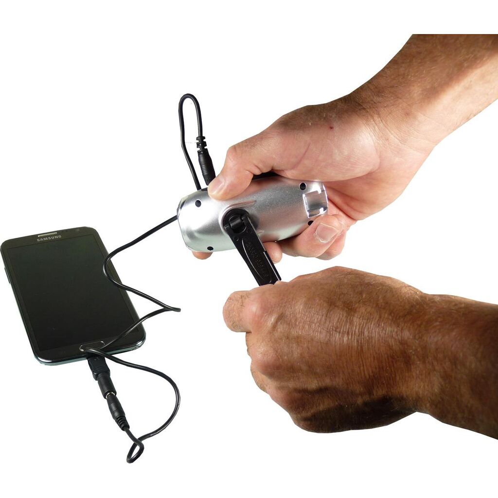 - Dynamo power supply: The built-in crank allows you to charge the internal battery with muscle power - independent of batteries and electricity.
